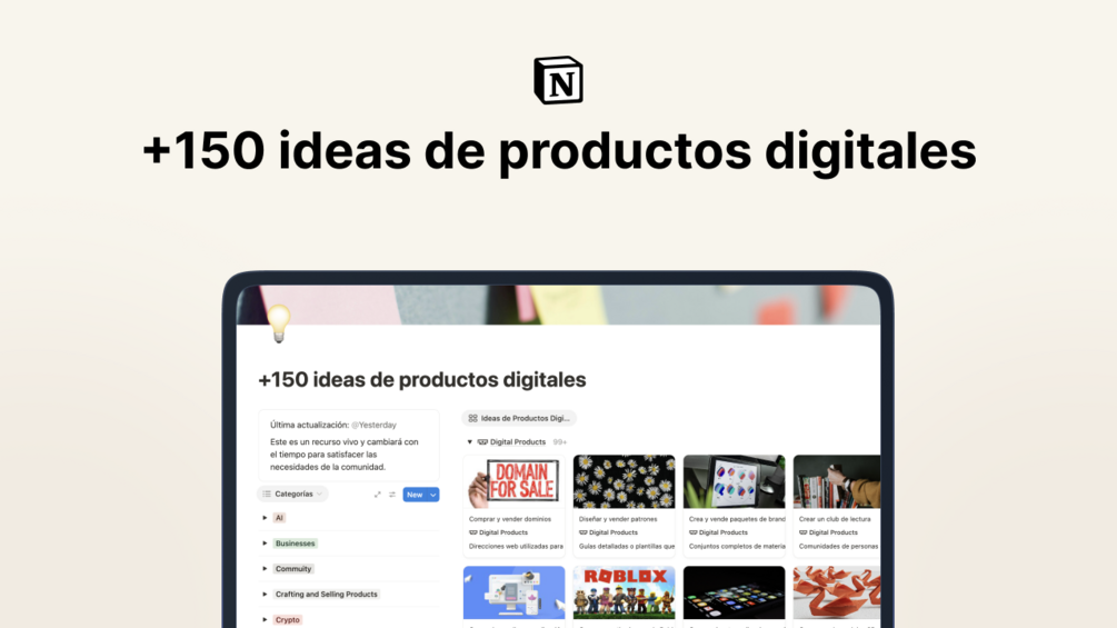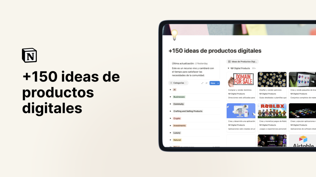 • Directorio principal en Notion: +150 ideas de productos digitales filtradas